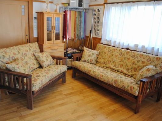 栗の3人掛けのスタンダードタイプをベッドになしたところです。ふとんなので、寝心地も抜群。