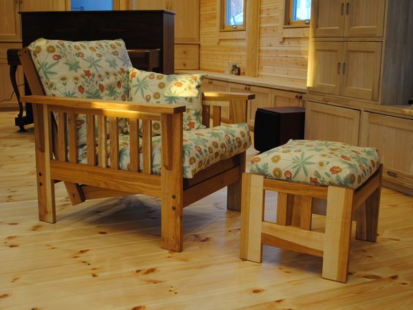 栗の1人掛けソファーをリクライニングさせたところです。